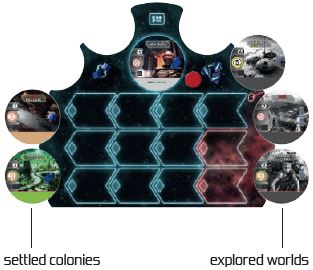 Note: An explored world's powers, victory points, and properties are inactive until that world is settled, becoming a colony (see below).