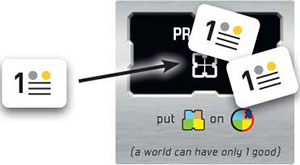 Notes: Some colonies, such as Comet Zone, provide credits when a good is produced on them. If a good is already present, then no credit(s) are provided. Similarly, Mining Industries' power compares only Rare Element goods actually produced that action.