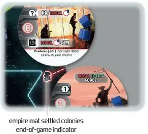 To keep your explored worlds separate from your settled colonies, add them to your empire starting from the right end of your empire mat. Then, as you settle these worlds, flip them over to their colored sides and add them to your empire starting from the mat's left end.