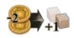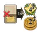 Discard 1 Action card from your hand (remove it from the game) and receive 4 VPs and 2 Coins.
