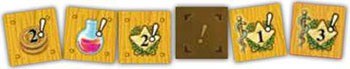 Income tiles give you a bonus (2 VPs, 2 Coins, 1 Potion token) during the income phase of each round.