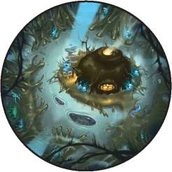 If you dominate this Location, and you forgo gathering a silver key, you may sacrifice one of your cultists (lose 1 point of Cult Power) to designate another cult for the extraterrestrials to target.