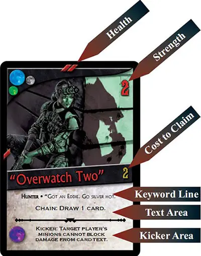 Minion cards represent followers that you bring into play and control. In addition to the normal features of an order card, every minion has a strength value in the upper right corner.