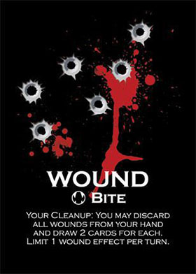 When damage is inflicted upon you, you receive one wound card from the top of the wound stack for each point of damage you take. Always place wound cards on top of your discard pile.
