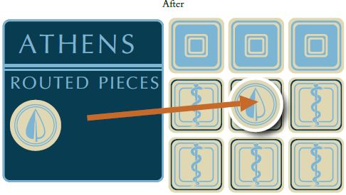 Place a single piece from your city's routed pieces area into any empty space in your rally area, facing any direction. Rally areas are marked with a | rod-and-snake symbol.