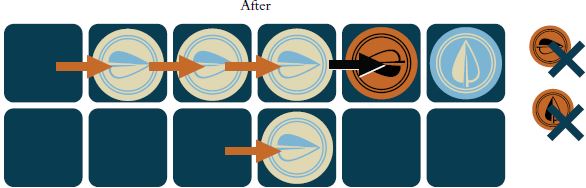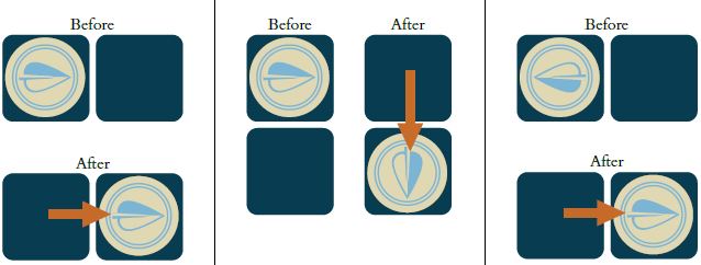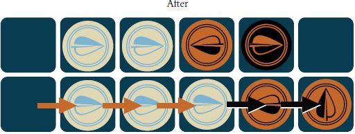 Important: Before moving a single piece, first rotate it to face the direction it is moving. This rotation happens as part of the move action; it is not a separate action.