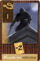 Switches your attack from stealth to strength, or strength to stealth, for the rest of the house. This can played after a guard card is revealed. The change from stealth to strength or vice versa holds for the rest of the guards in the house.