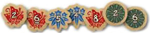 There are 5 tokens for each clan. These are used to show which clan controls a house and the honor level of the house.