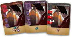 Other envoys may take various kinds of treasure and thus score varying honor. For example, an envoy might require 1 of any treasure plus 3 of any treasure of the same kind. You could bribe this envoy with 1 vase and 3 jade (19 honor), or 4 fans (8 honor), or 1 scroll and 3 vases (15 honor), etc.