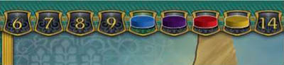 Randomly determine a First Player. The order of play is established in clockwise order around the table, starting with the 1st Player. Each Player places the disc of his color on the Victory Points (VP) Track: 1st Player on the 10, 2nd Player on the 11, 3rd Player on the 12, and 4th Player on the 13.