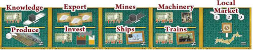 When a player receives Yen or Coal he takes them from the common supply and places them in his Budget area.