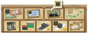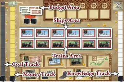 Note: Black cubes on the tracks of a Player Board (Coal, Money, or Knowledge) represent Level markers.