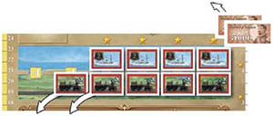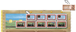 - 6 Train tiles of his color next to one another on the Train area with the "+2" side face-up