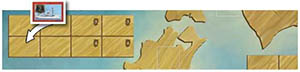 Randomly place 1 City tile face up on each City slot of the Game Board. Also, randomize the orientation of the tile (see picture below). The remaining tile will not used in this game and is returned to the box.