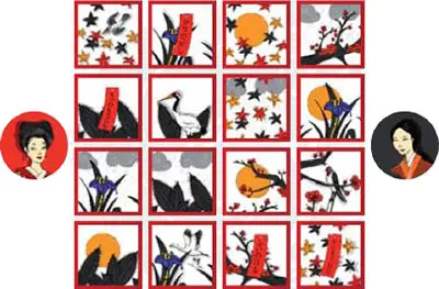 Shuffle the 16 garden tiles and randomly arrange them face-up in a H x H grid to form the Imperial Garden.