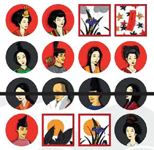 In this example, it 15 the Genji player 5 turn. The elements on the previously removed garden tile are the bird and the pine tree. Because there are no more matching elements on any of the remaining garden tiles, the Genji player has no legal moves to choose from, and therefore the Heike player wins the game.