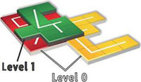As you build your display, you will place tiles on the table and on top of other tiles. All tiles directly on the table are on level 0. Any tiles directly on top of level 0 tiles are on level 1, tiles directly on top of level 1 tiles are on level 2, and so on.