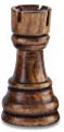 The Rook, shaped like a castle, is the most powerful piece aside from the Queen. It is also an easy piece to move. A Rook moves any number of squares in a straight line along any column or row. (Rooks can never move diagonally).