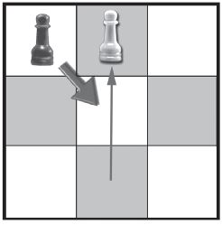 ![]() Diagram #2 -Pawn Captures one space forward, on the diagonal |