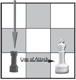 Further, the spaces lying between them must be vacant (meaning the pieces that started there will have moved elsewhere). AND, none of these intervening spaces can be under attack by opposing pieces (meaning no opposing piece could move onto one of these spaces on its next turn).