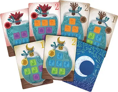 Discard the top card of the jar deck. Place the topmost point token from the stack matching the card color (gold, brown, or red) next to the black die in the tempest.