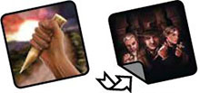 The holder of the Ancestral Stake chooses a Ritual from those that have not yet been played. Its effects are applied (see opposite). The used Ritual card is then turned face down.