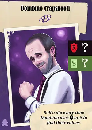 Dombino Crapshooti: Dombino's stats may be rolled multiple times per round. For example, if Dombino is receiving money and Respect, he needs to roll the dice, and then if Making a Move on the same turn - must roll the dice again to determine new stats.