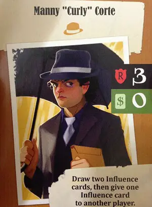 Ricardo Launius: While Richard has no suits, it is still possible to use positional and Gangster powers to get Influence on him, as well as the player's choice to discard a card to put 1 Influence on any Gangster.