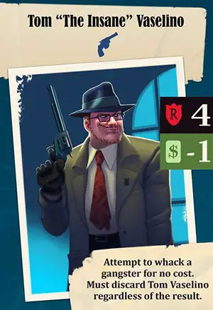 Mike "Machine Gun" Fitz: If the hit is successful, the controlling player of the killed Gangster still loses four Respect.
