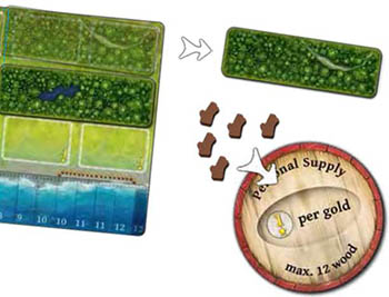 - Observe the 12 wood limit on your "Personal Supply" board. If you already have more than 7 wood in your personal supply, you will get less than 5 wood from this action.
