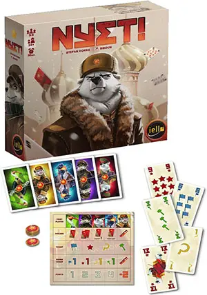 Players look at their cards and try to influence the terms of the upcoming round with Nyet! tokens.