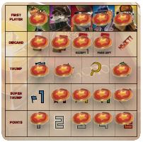 Each team counts the number of tricks won and Loot captured (see below). This total is multiplied by the number of points indicated by Line 5 on the game board. The scorekeeper writes the results on the scorepad.