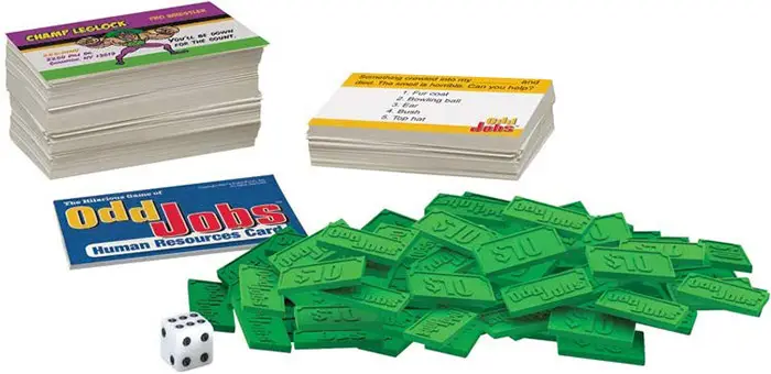 When a 1-5 is rolled, take a Job Card from the pile, flip it over, and read it aloud to the other players, inserting the corresponding numbered word into the sentence.