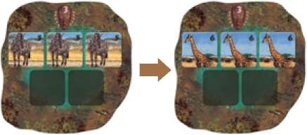 Take the animals from the Okavango (visible stock) to your own reserve. Your turn ends after this.