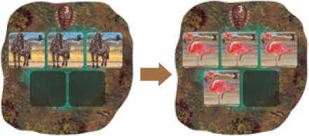 If all the fields of a river delta are occupied, the animal cards are added to the hidden stock (i.e. in the bag). At that point, the river delta is depleted and must be turned over.