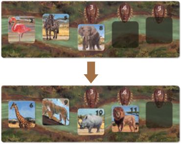 If there are too few cards in the bag, the remaining animals are taken to the Okavango. This phase is scrapped if there are no cards in the bag.