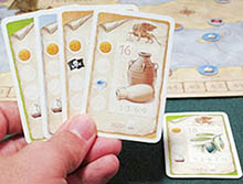 Each player "sells" the Goods Cards from his own Cargo Stack. The score depends on the number of Cards of the same Good grouped on the Cargo Stack. For this reason it is important that the order of the Cards on the Cargo Stack is not altered.