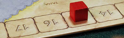 This is a wooden cube for each player on this Track indicates the number of Ducati (the currency of Venice) Points a player owns.