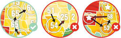 A: For each number you don't have a legal place to write, put an X in any empty state of your choice. During scoring, your route may not pass through an X.