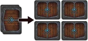 There is no map or board in One Deck Dungeon. Instead, the dungeon's layout is represented by face-down cards called closed doors, as the art on the back of each encounter card depicts a large wooden door. There are always four available slots for doors.