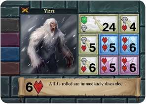 All dice are cleared, and a new round begins. If the warrior can survive, she might overcome the Yeti on the next round!