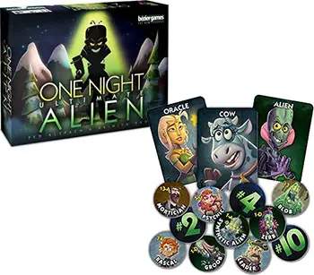 In One Night Ultimate Alien, strange beings from beyond have infiltrated your small village, bringing fearsome futuristic technology and an insatiable appetite for villagers and their livestock. Fortunately, your village has powerful inhabitants who have been tasked with saving it from the alien invaders.