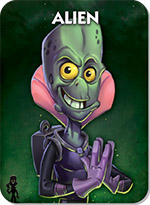 For the roles below, "alien" includes the regular Aliens, Groob, Zerb, and any other card that becomes an alien during the Night Phase. If any alien is killed at the end of the game, the alien team loses.