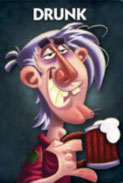 The Drunk is so drunk that he doesn't remember his role. When it comes time to wake up at night, exchange his Drunk card for any card in the center, but he does not look at it.