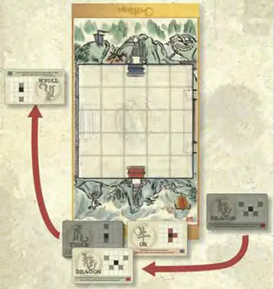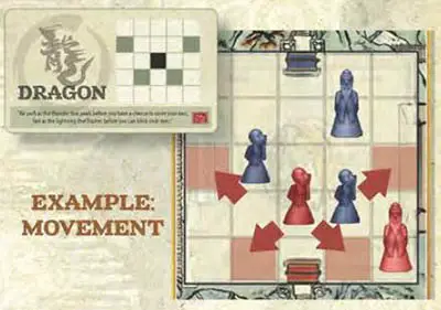 Combat at Onitama is simple and elegant, as befits a contest between two Masters. You and your opponent will take turns following the two steps below, one for the body, one for the spirit.