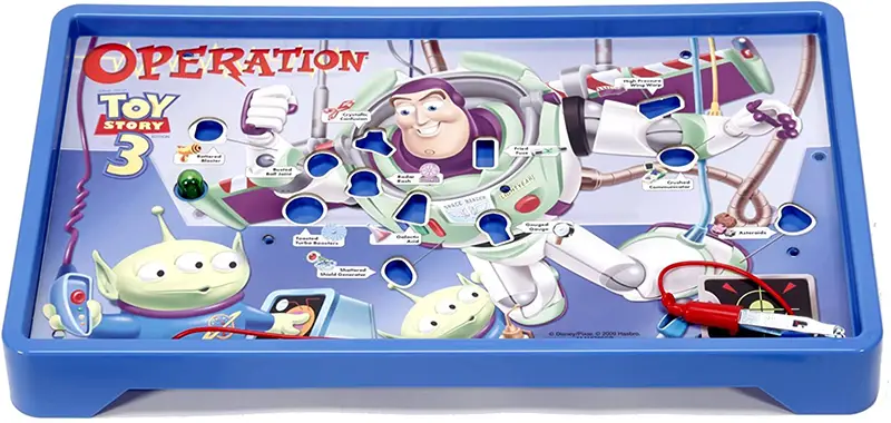 - Gameboard with Buzz Lightyear "patient" and tweezers