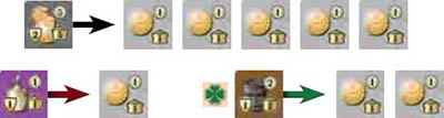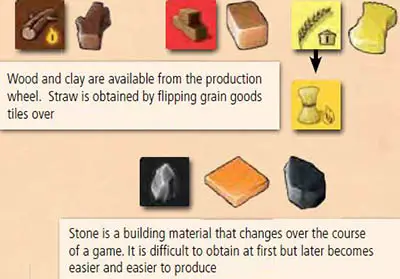 Some buildings require different types of goods tiles for their functions. Since both sides of a goods tile count as different types of goods, you will sometimes want to flip grain over to become straw as part of a building function; this lets you pay both 1 grain and 1 straw (provided that you have two tiles).