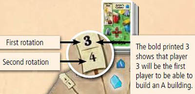 Bold print checking numbers indicate which player will be the first to choose from new buildings.