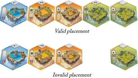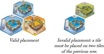 1 Sort the Region tiles in 3 distinct piles (one pile per level). Each pile is then shuffled and placed facedown on the table.