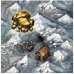 Now, the players turn over their coal and gold tiles. Each adds his together and moves his scoring marker accordingly on the scoring track. The player with the most points is the winner!